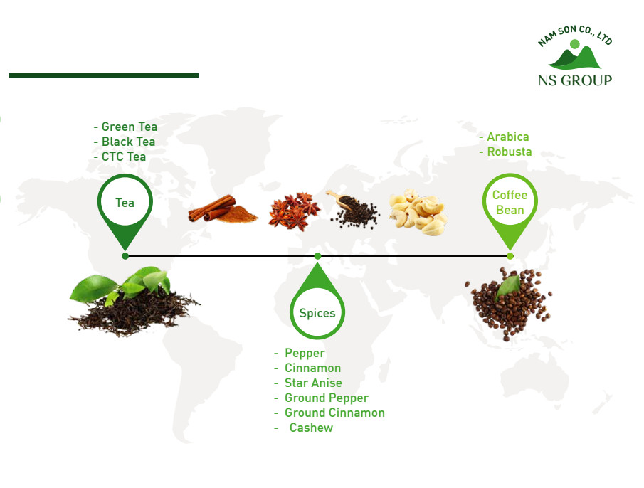 Nam Son Phu Tho Co., Ltd., established in 2001, is a global enterprise headquartered in Vietnam. With the most important attention to sustainability and product traceability, the company has researched and produced the highest quality agricultural products in Vietnam such as Tea, Coffee, Pepper, Cinnamon, and Anise star.. The company always “takes customer benefits as its development goal.
